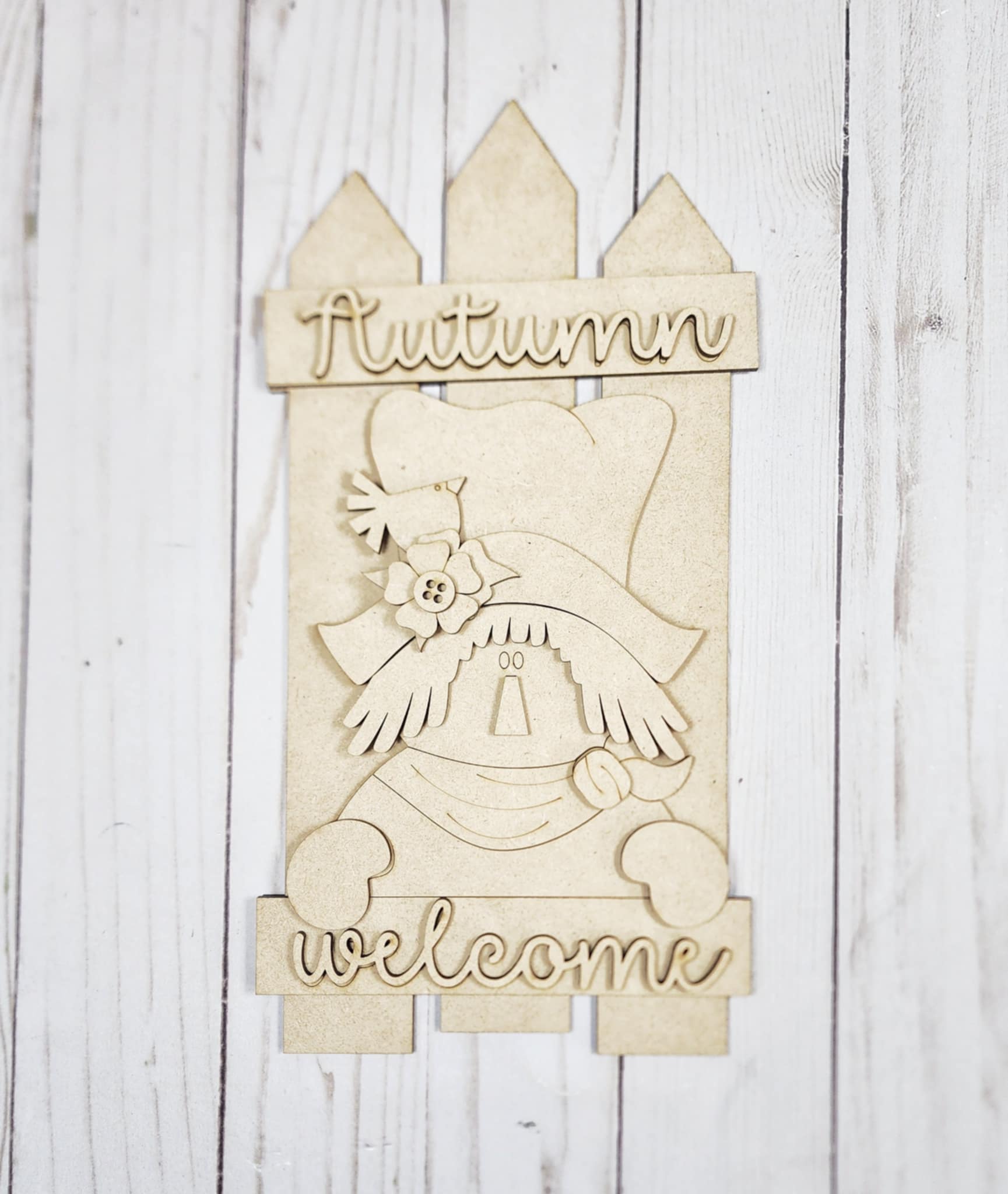 Bring fall magic to your home with the 18" Fall Scarecrow Fence Leaner DIY kit! This laser-cut shelf decor kit includes everything you need to create a charming "Welcome" sign featuring a cute scarecrow. Perfect for a fun, hands-on autumn project, it adds a playful touch to your entryway or mantel. Easy to assemble and richly detailed, this festive kit lets you craft a cozy seasonal accent that invites warmth and cheerful vibes all season long.