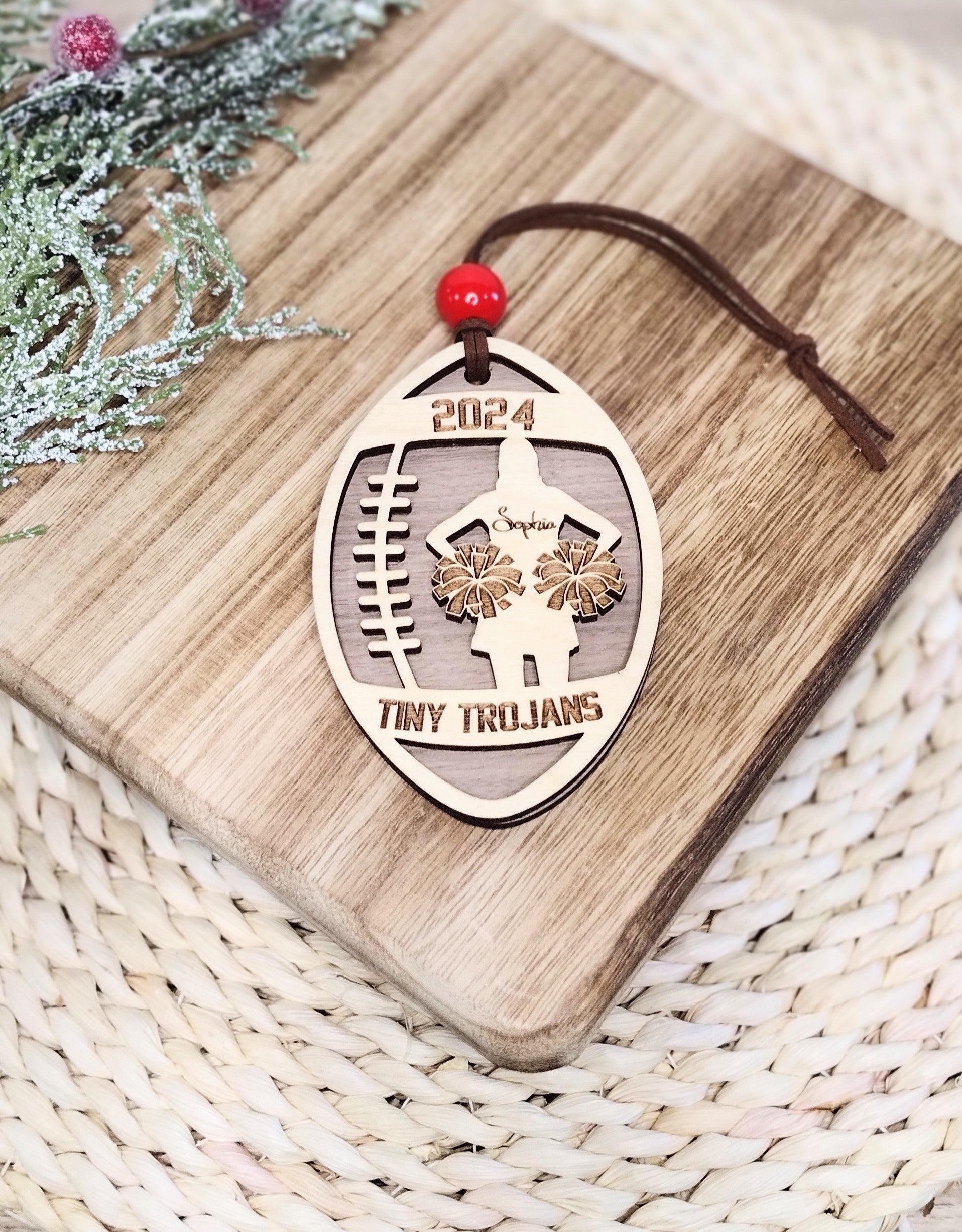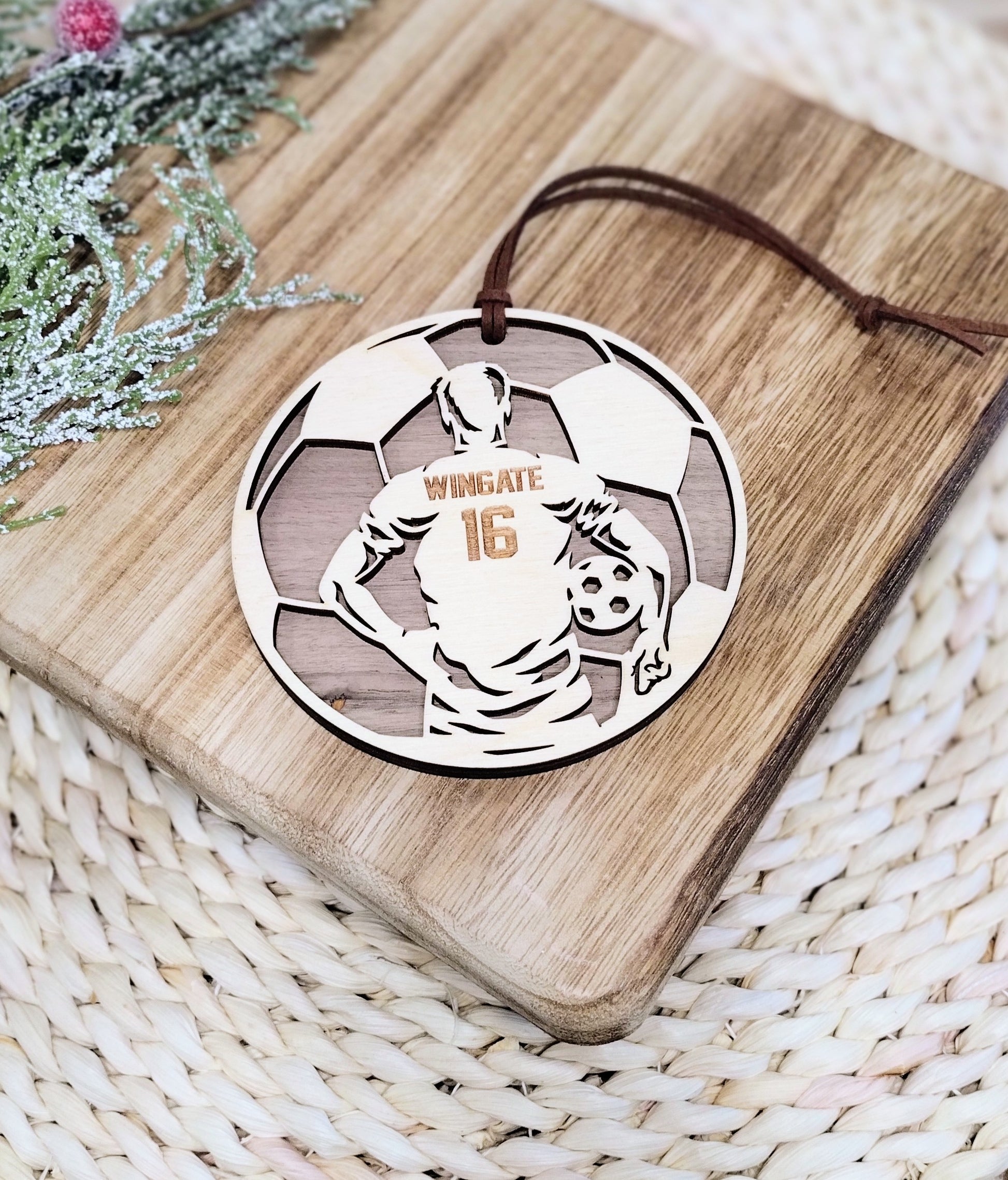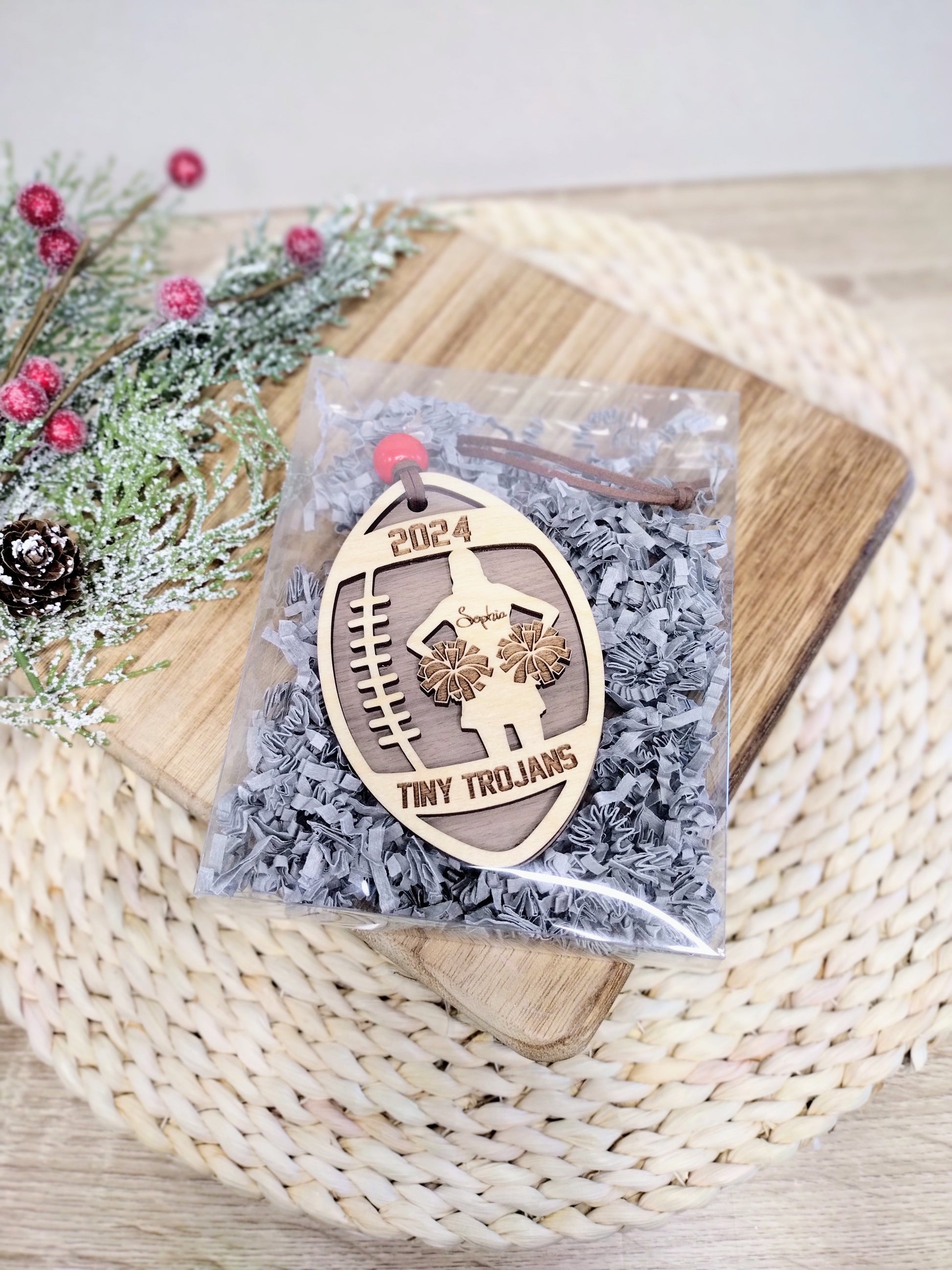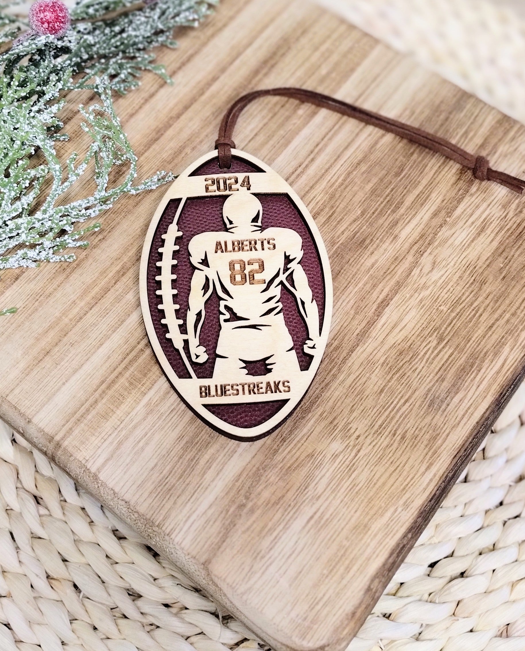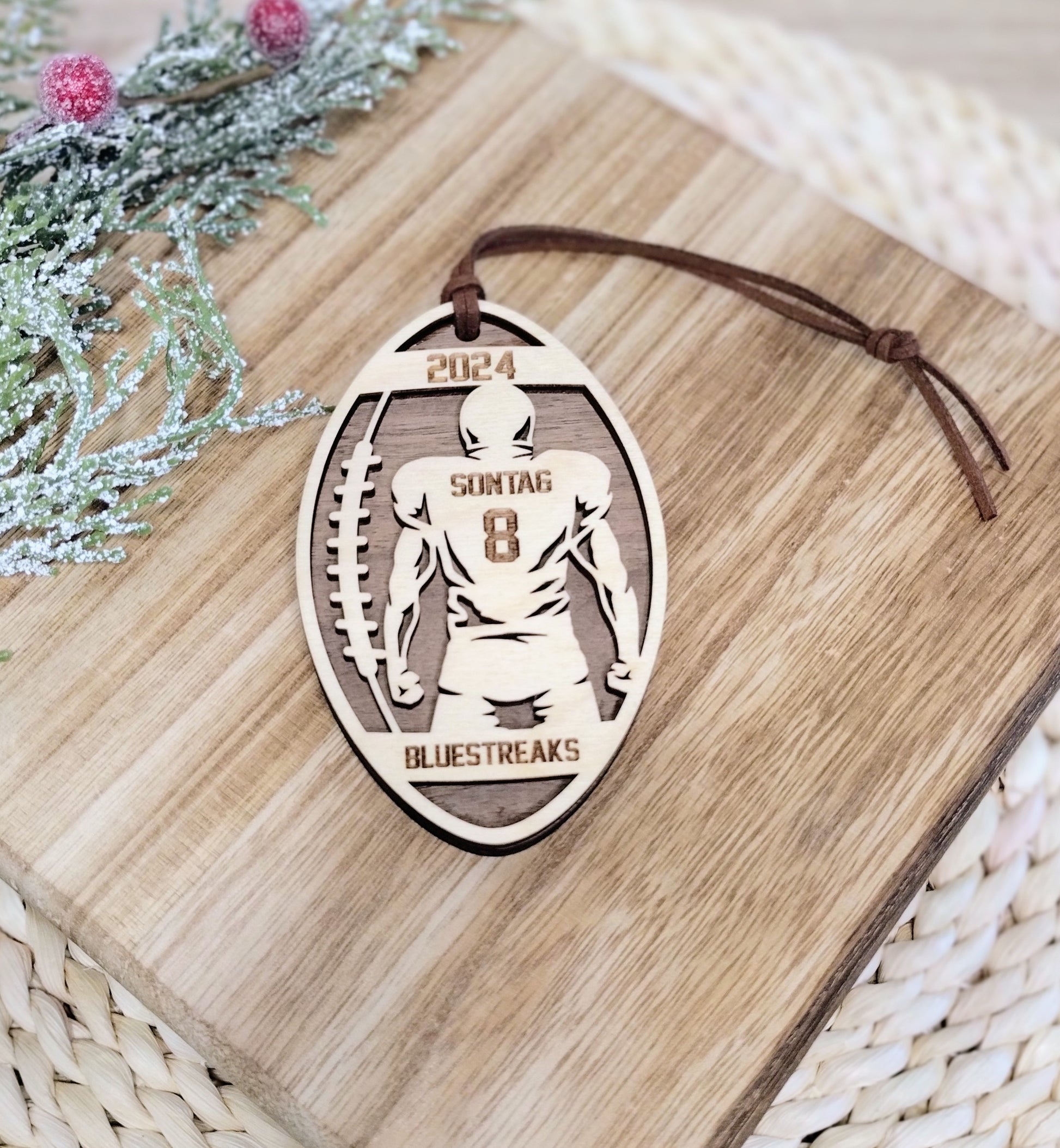 athletes, captured in the perfect pose and framed by a football shape for a striking effect. Each ornament celebrates the passion and energy of the sport, making them perfect for athletes and fans alike. These ornaments